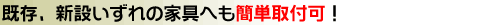 古い家具でも、買ったばかりの新しい家具でも、オフィス家具でも、壁がある限り、簡単に取り付けることができます。 |