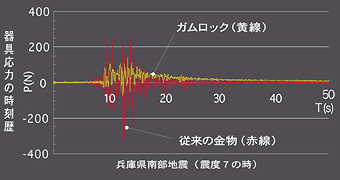ネジで強固に留めるより、強粘着材で柔らかく留めエネルギー吸収させたほうが、器具にかかる力が約1/4に軽減され、転倒防止効果が高いことが実証させています。 |